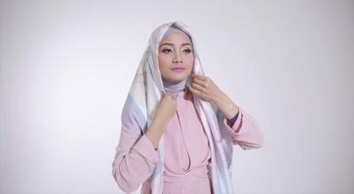 Tutorial Hijab Satin Segi Empat Motif