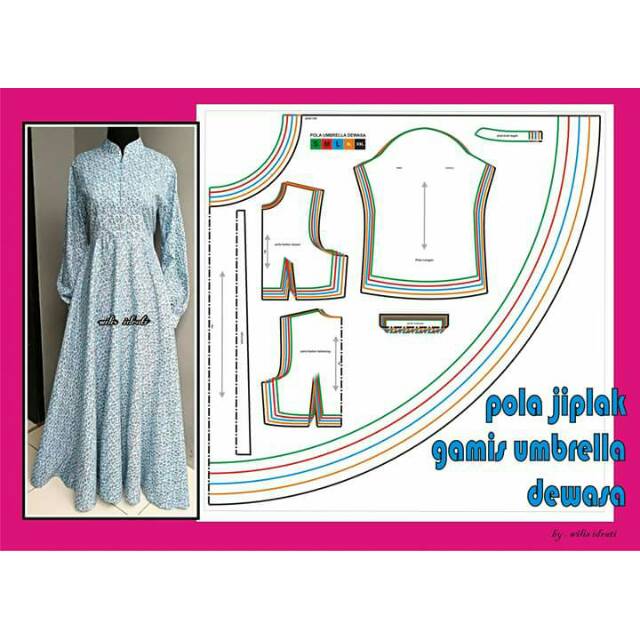 Pola Jiplak Gamis Umbrella Dewasa Busui Friendly Lengan Manset S