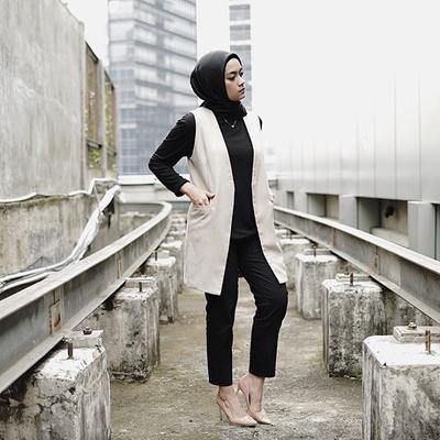 Inspirasi Hijab Gaya Monochrome And Casual Ala Rani Hatta