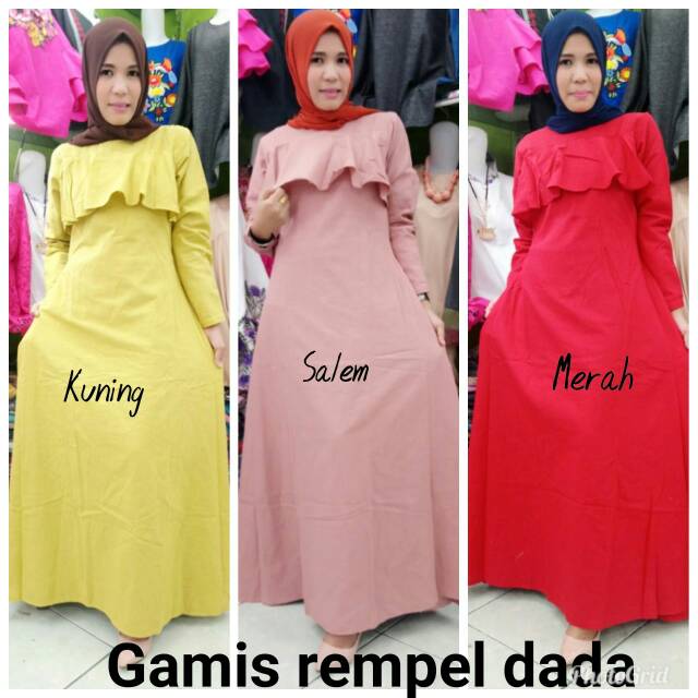 Model baju gamis rempel di dada. Detail produk baju gamis maxmara amami gamis modern dari bahan maxmara motif dikombinasikan dengan mosscrepe polos. Set gamis syari ini adalah pakaian full set yang berupa satu baju gamis dan satu jilbab besar menutup dada dan perut.
