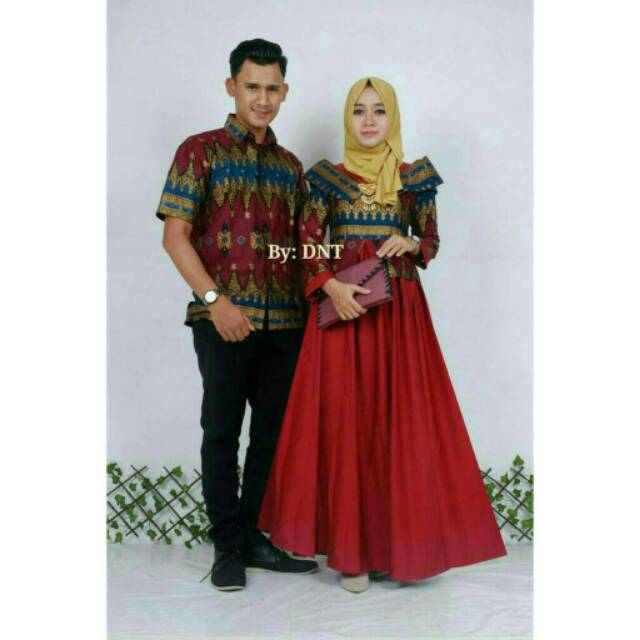 Kebaya Modern Model Gamis Batik Kombinasi Kain Polos